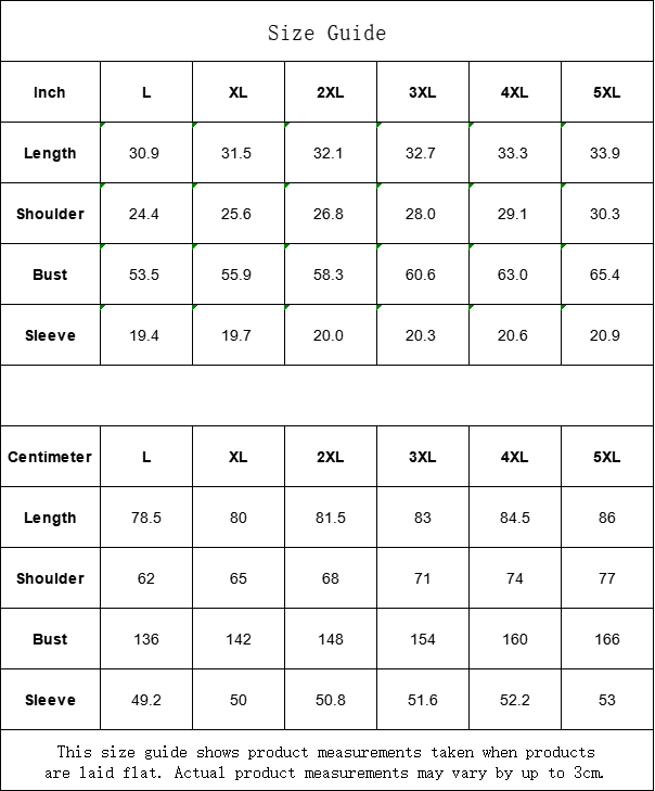 | Centimeter | L | XL | 2XL | 3XL | 4XL | 5XL |